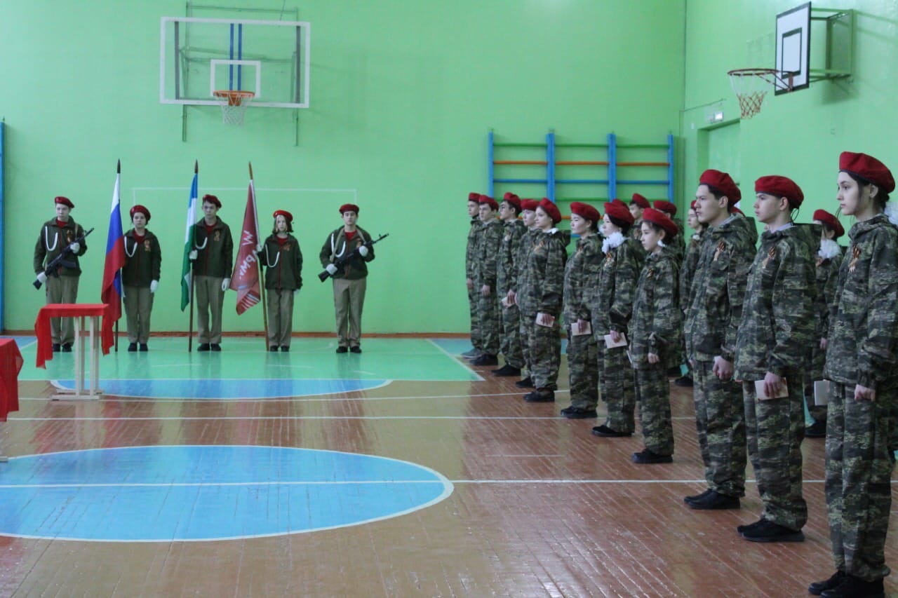 Руководитель местного отделения Всероссийского детско-юношеского военно-патриотического общественного движения «ЮНАРМИЯ» Рустам Маратович ХисматуллинЮнармейцы дали торжественную клятву на верность Отечеству и всему юнармейскому братству. Слова клятвы произнёс обучающийся 10-го класса Мустафин Айнур, юноши и девушки звучно повторили за ним слова: «Клянусь! Клянусь! Клянусь!».