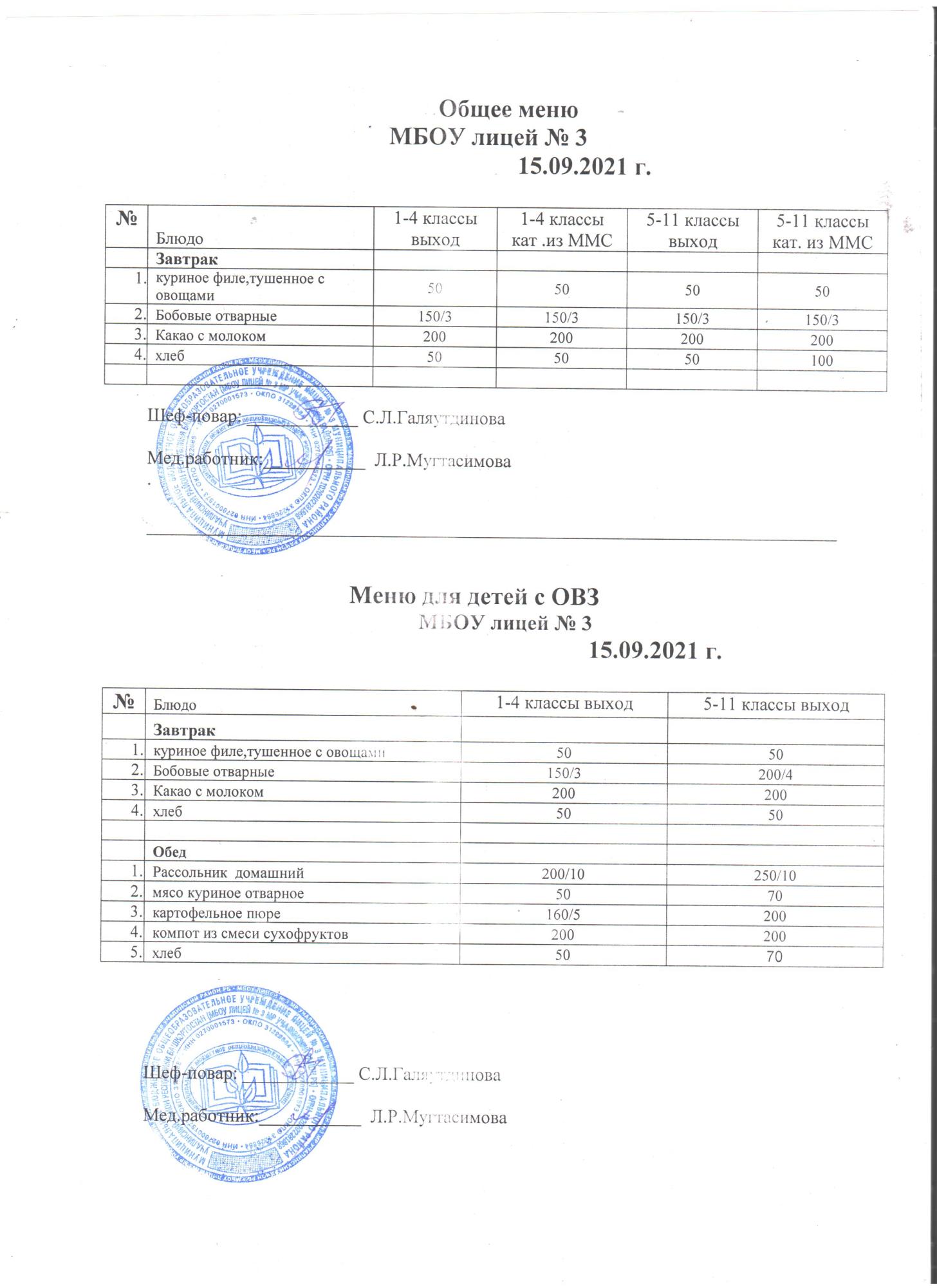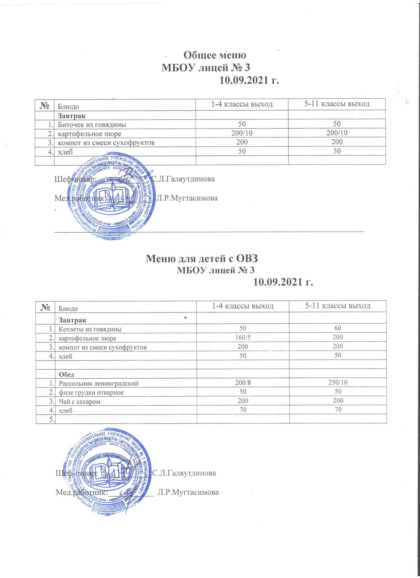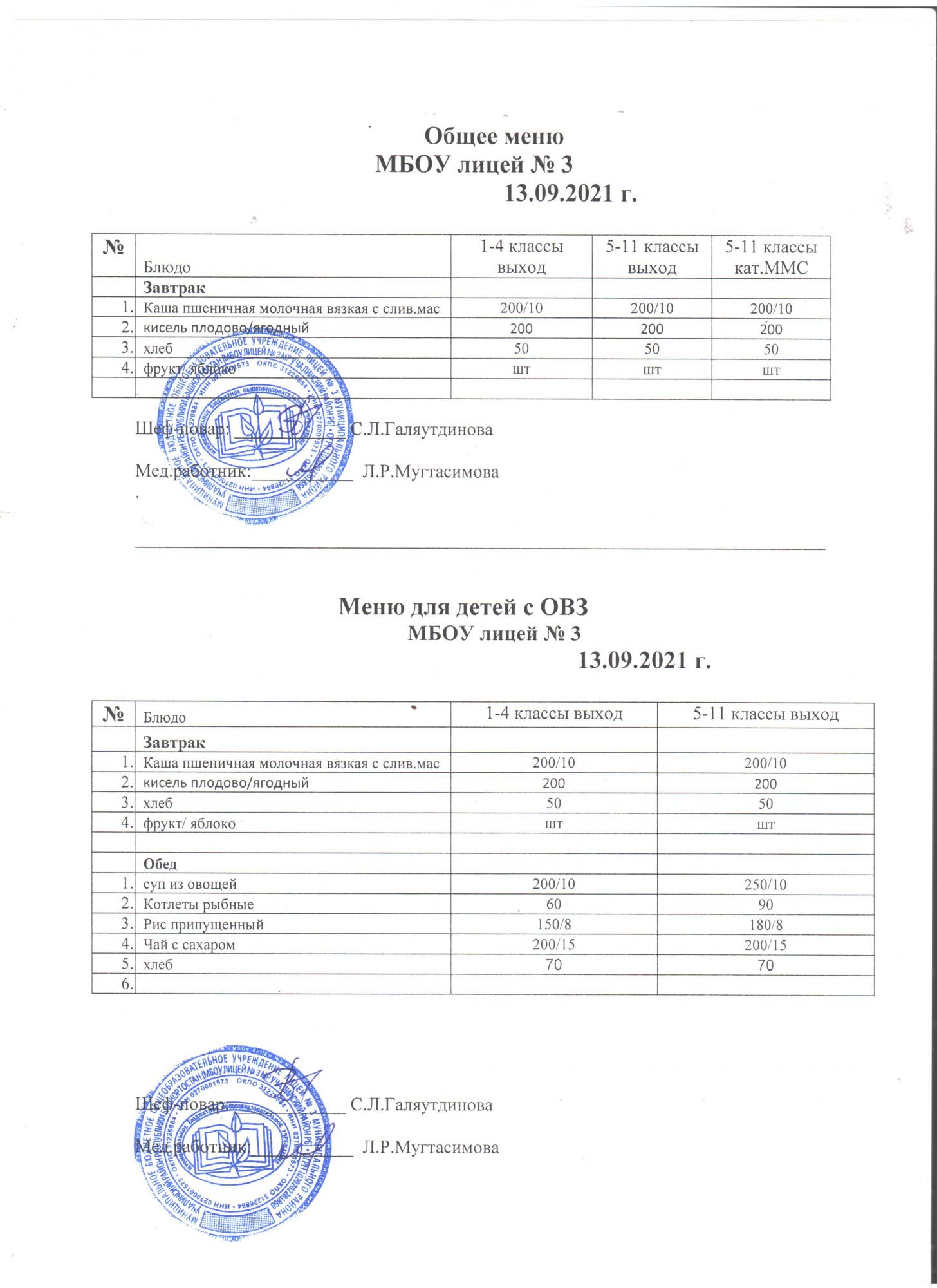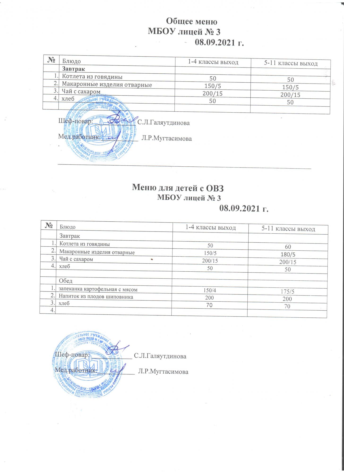 (Меню на 6 сентября 2021)